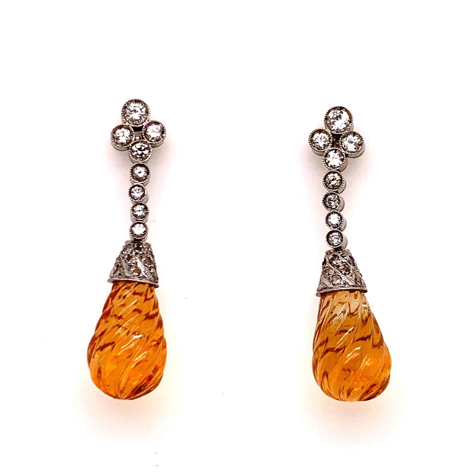 Platinum Diamond Citrine Drop Earrings