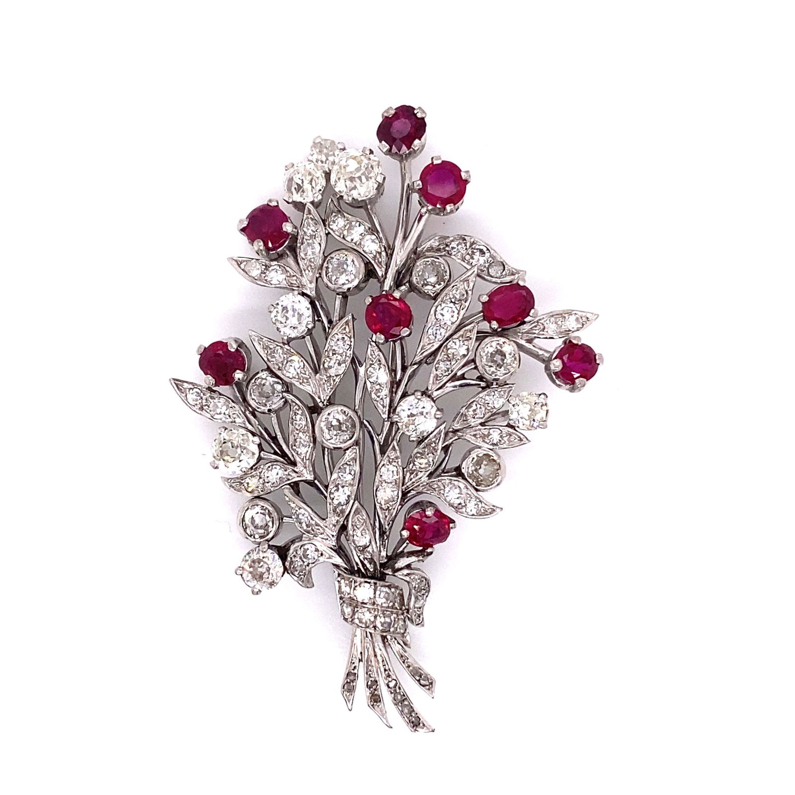 Platinum 11.10ct Diamond and Ruby Bow and Bloom BroochEastern European Art Gallery Inc$17,0005 days Left