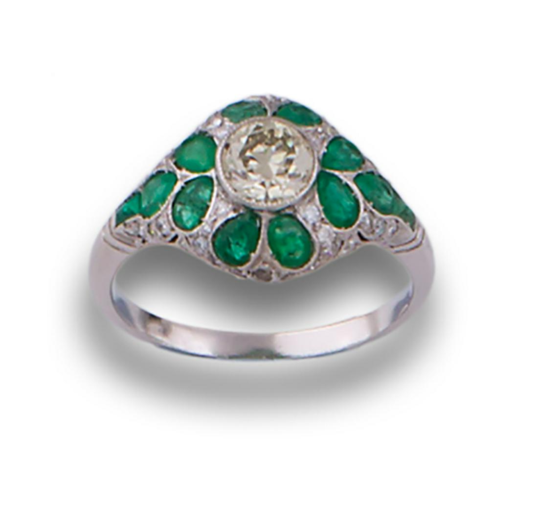 PLATINUM EMERALD & DIAMOND RING