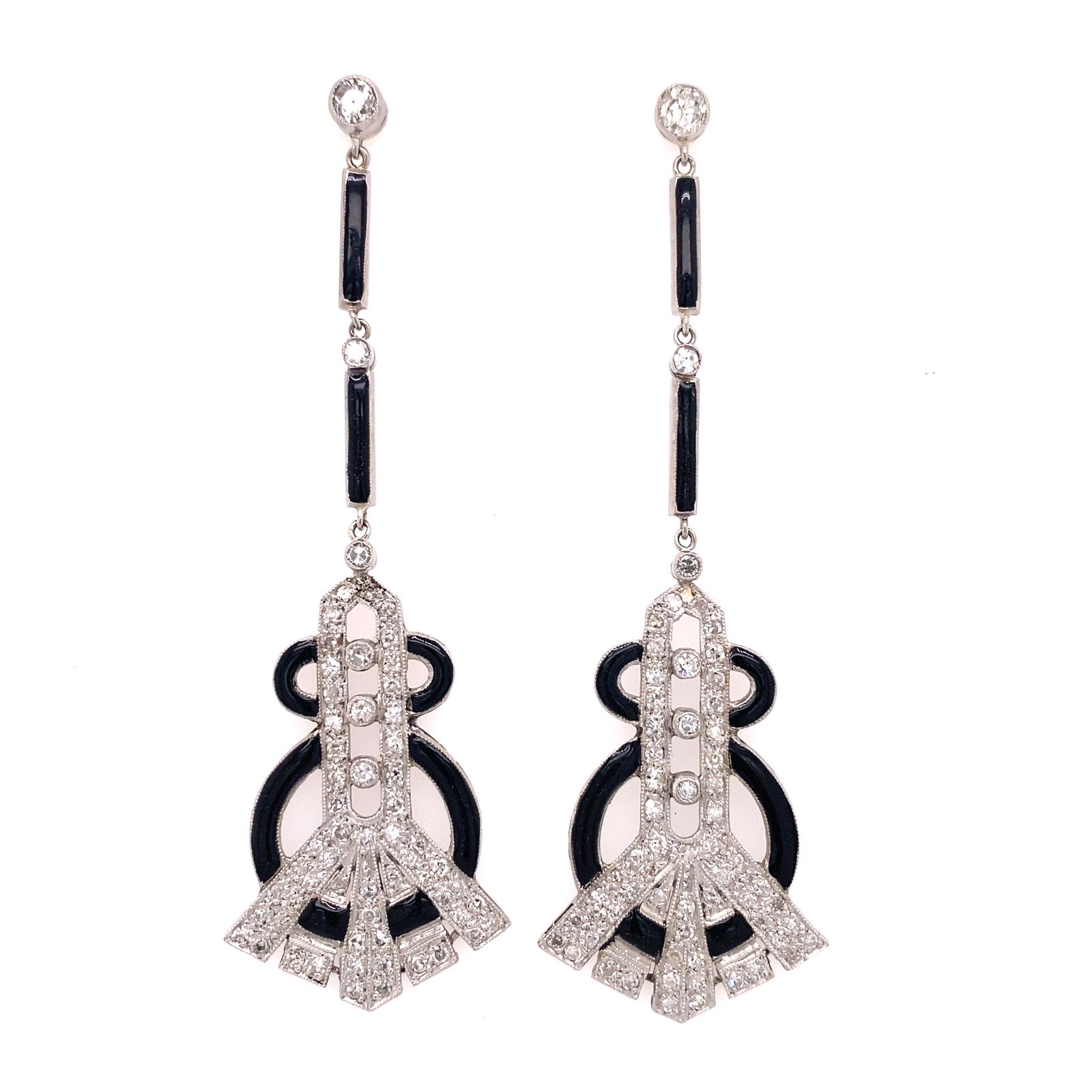 Elegant 14k White Gold 2.79ctw Round Black and White Diamond Dangle EarringsMynt Auctions4.4(835)$1007 days Left