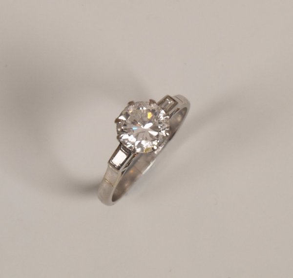 Platinum mounted single stone round cut diamond ring