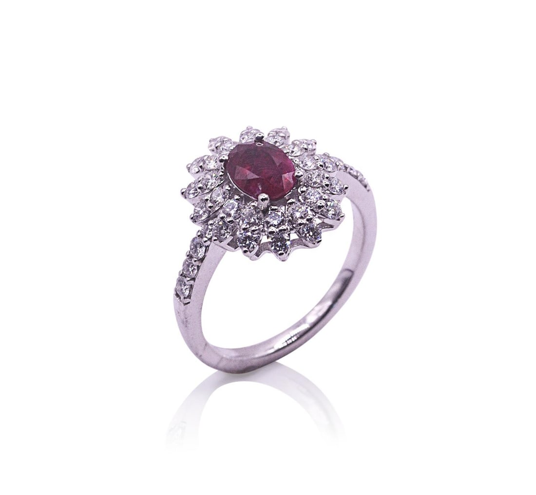 Platinum Natural Mozambique Ruby Corundum and Diamond Ring.