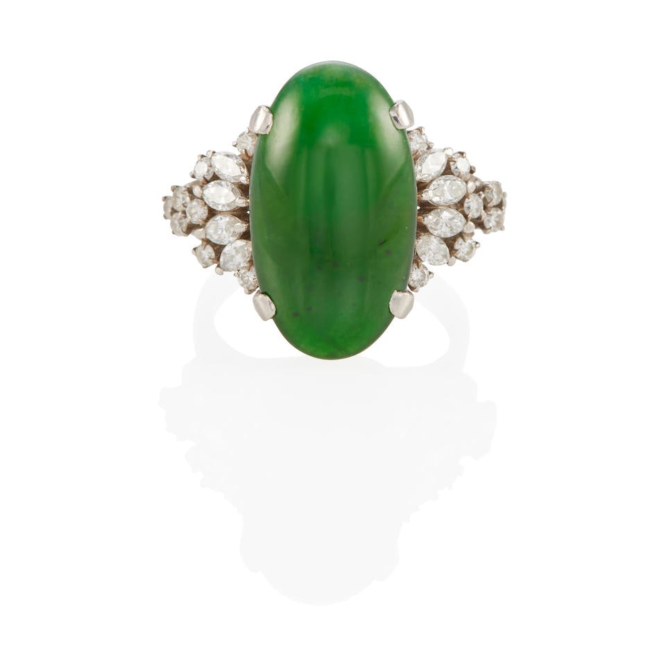 Platinum Setting with 15mm by 10mm Jade and 0.40ct Diamond Ladies RingRiverside Galleries4.4(200)$502 days Left