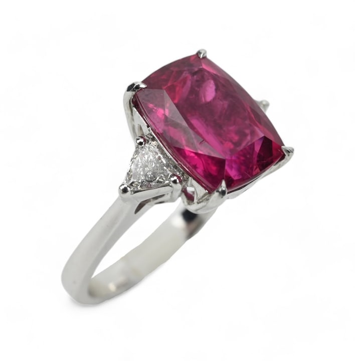 Platinum Rubellite and Diamond Cocktail Ring