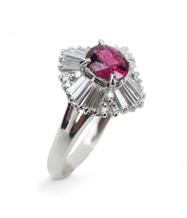 Over 10 Carats Natural Ruby and Baguette Diamond Ring in Platinum w/ AIGS Certification.Diamond District Gold Buyers$75,000Apr 04, 2026