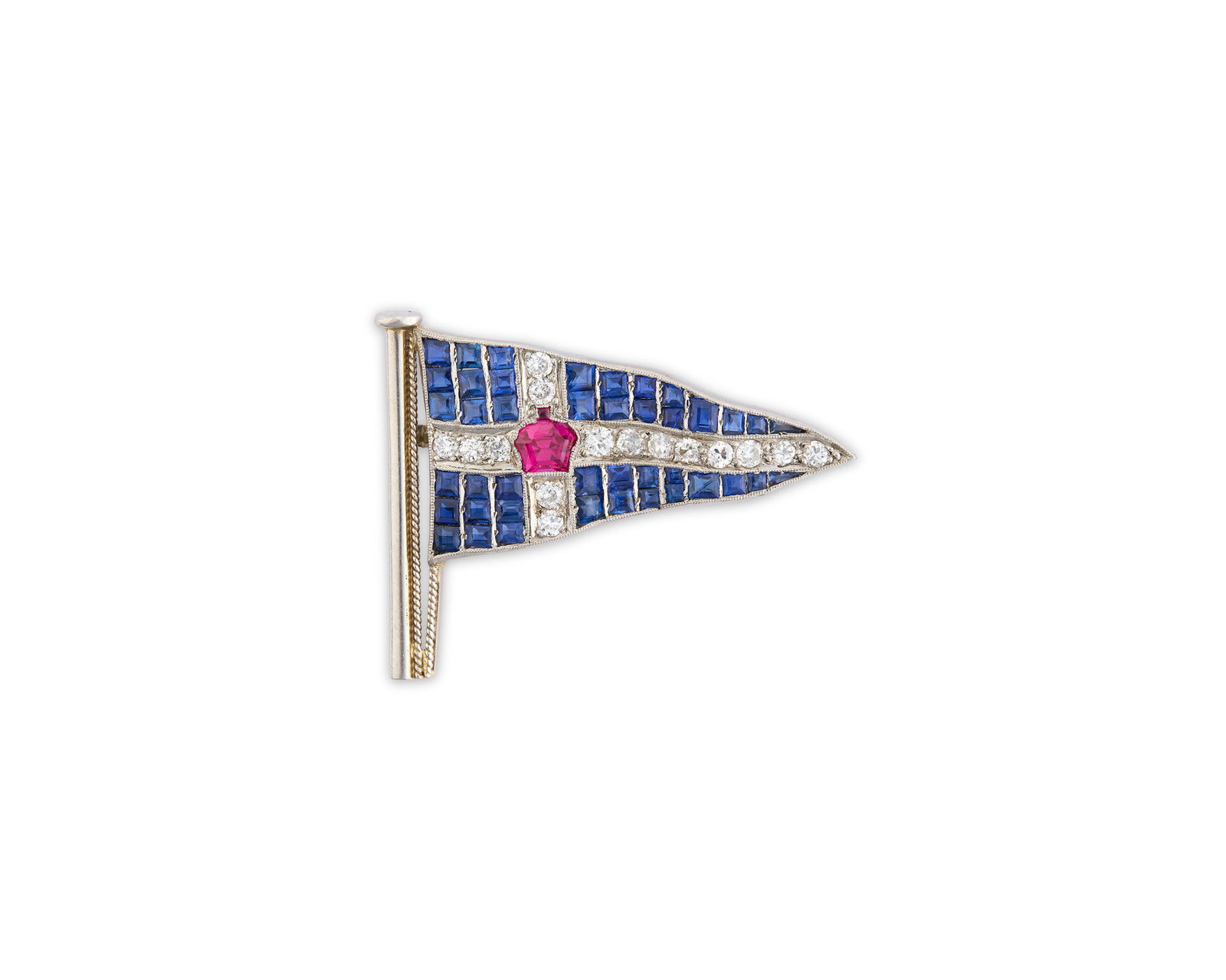 Platinum, Sapphire, and Synthetic Ruby Brooch
