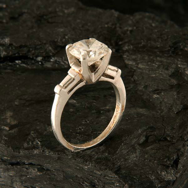 Platinum solitaire ring with one round mine cut d