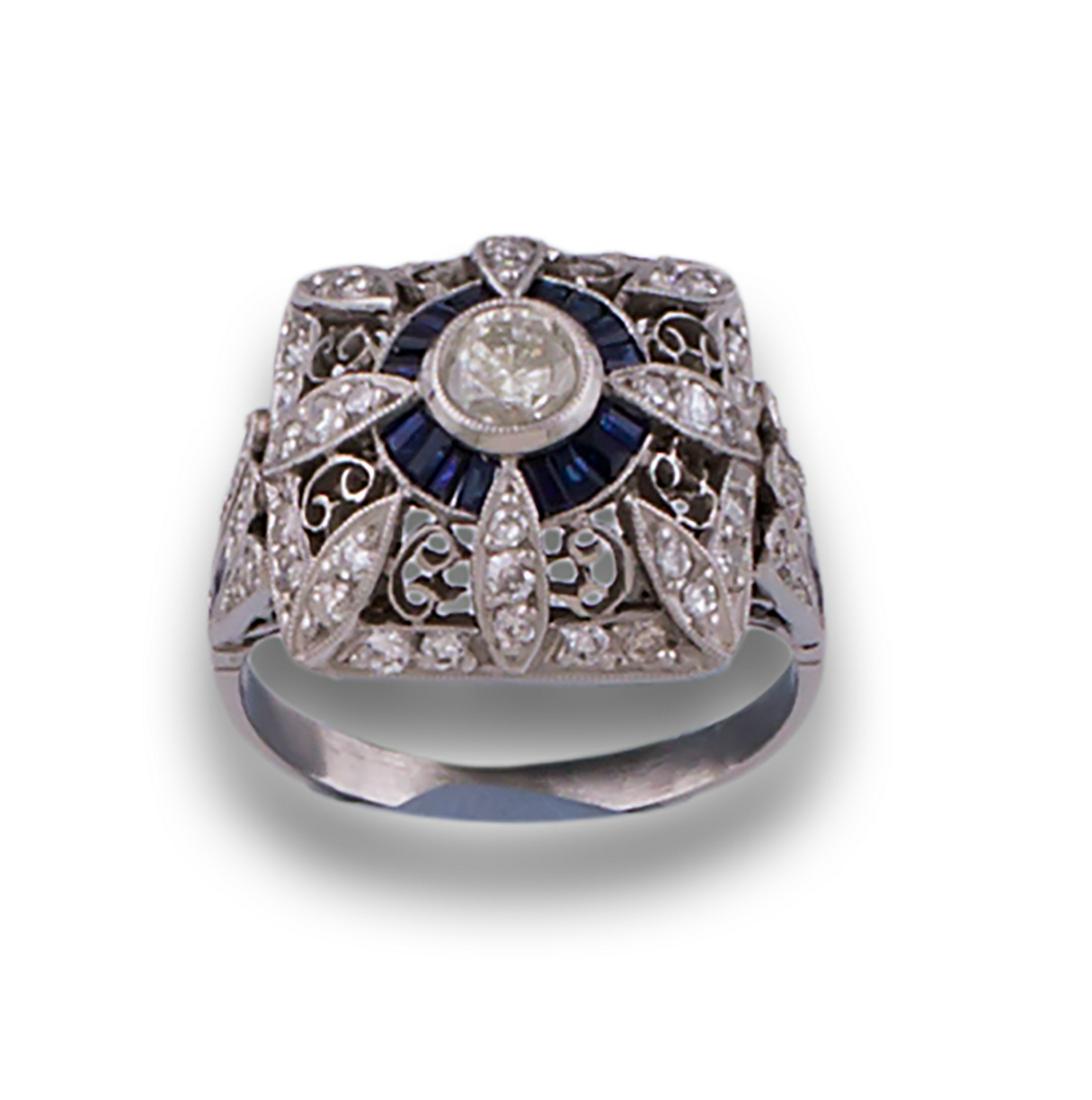 PLATINUM SQUARE DIAMOND SAPPHIRE RING