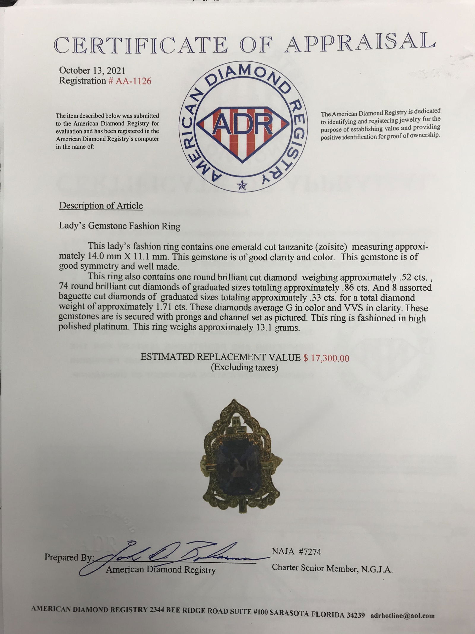 18K White Gold Ladies Ring with 17.21ct Tanzanite and 1.59ct tw Adjacent DiamondsRiverside Galleries4.4(205)$504 days Left