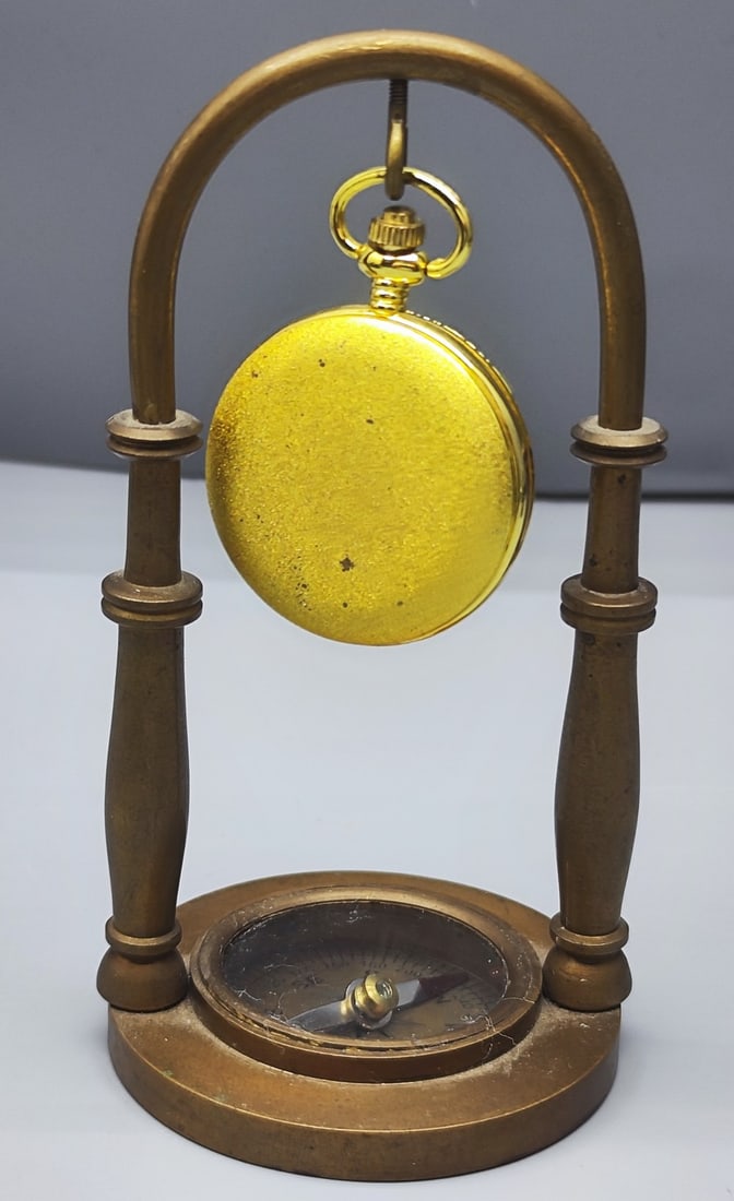 Pocket watch holder with compass at the base