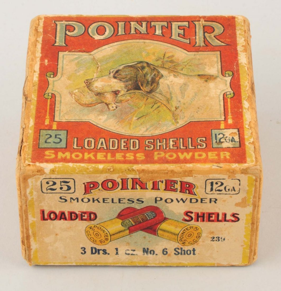 Sold"Defiance" full 1 piece picture (Setter) boxUnited States Cartridge Co., "Defiance" full 1 piece picture (Setter) box. This is a fine condition box showing mostly sharp corners and margins, bright color and only a hint of age patina. Top flap iSee Sold Price