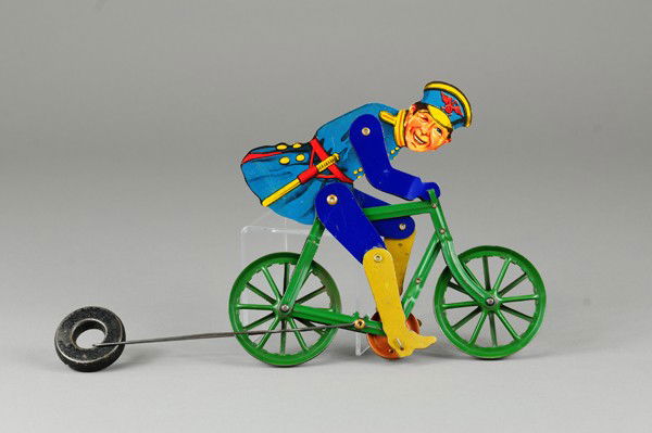 POLICEMAN ON BICYCLE STRING TOY