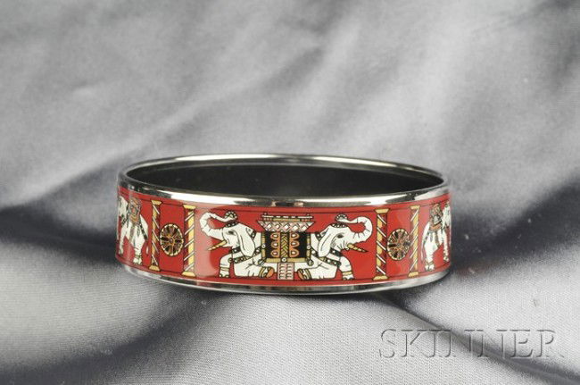 Polychrome Enamel Bangle, Hermes, depicting elephant