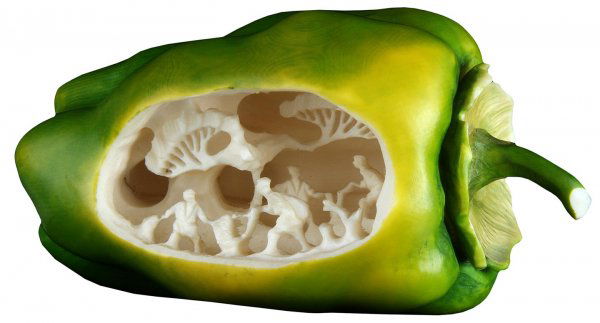 Polychrome ivory netsuke bell pepper carving