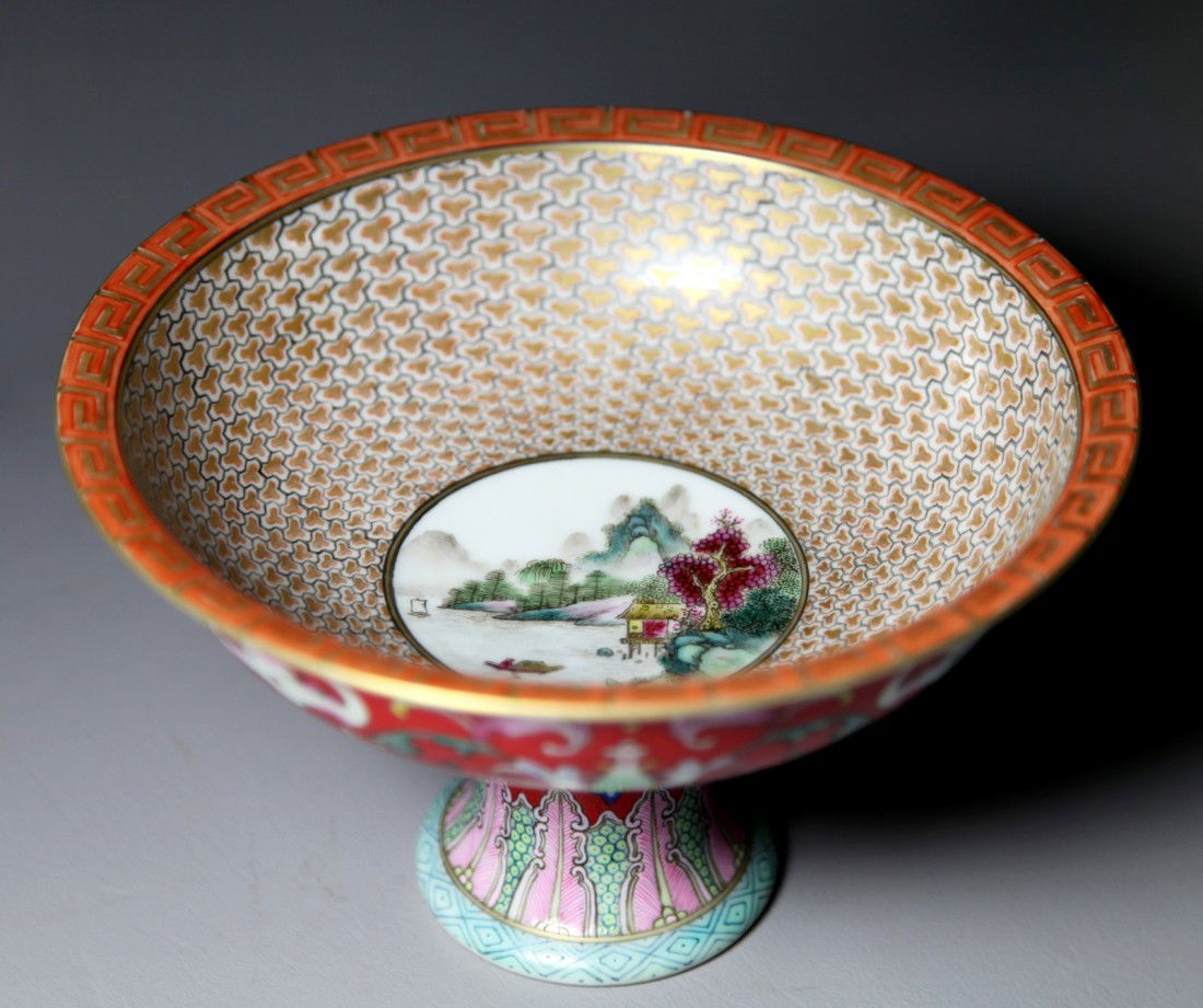 POLYCHROME PORCELAIN STEM BOWL