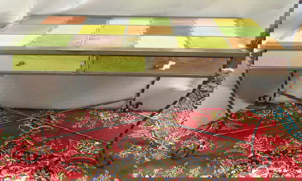 Polychrome two drawer desk