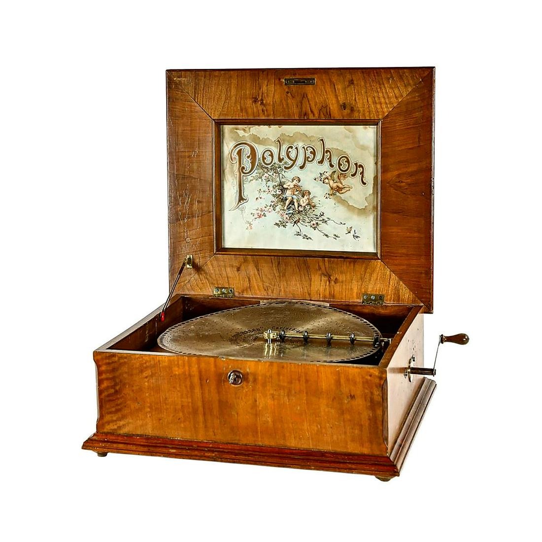 Swiss Music Box5 days LeftGerman Disc Music Box, Symphonion, Serial #230253Mar 21, 2026Regina Company Disc Music BoxMar 14, 2026Rare Orpheus Disc Musical Box, c. 1899Mar 14, 2026SCHUTZ-MARK "SYMPHONION" MAHOGANY-CASED DISC-TYPE MUSIC BOX AND DISCSMar 05, 2026Aegir Disc Musical Box, c. 1895Mar 14, 2026Symphonion Style 25 Disc Musical Box, c. 1900Mar 14, 2026Orphenion Table Disc Musical Box Model 51, c. 1895Mar 14, 2026Polyphon Upright Coin-Op Disc Music Box with CabinetMar 14, 2026German Disk Music Box, Polyphon MusikwerkeMar 14, 2026Regina Style 50 Disc Music BoxMar 14, 2026Antique Regina 15-1/2" Double Comb Disc PlayerFeb 28, 2026Edison Diamond Disc Phonograph, c. 1925Mar 14, 2026Perophone Gramophone Cabinet, c. 1925Mar 14, 2026Adler/Fortuna Disc Musical Box No. 245, c. 1900Mar 14, 2026Emerson Oak Disc Phonograph Cabinet, Early 20th CenturyMar 07, 2026