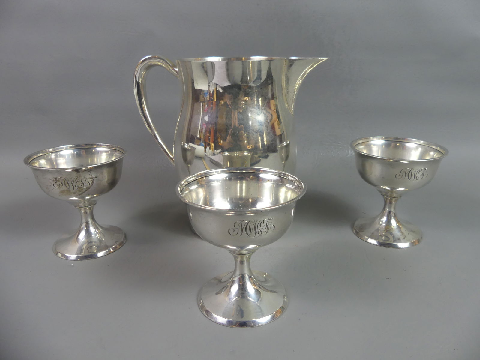 POOLE STERLING JUG & 3 CUPS