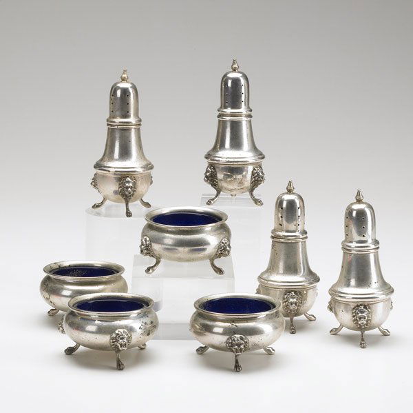 A composed lot of six various silver and glass tableware objects7 days LeftVintage Pewter Tableware Lot: John Somers, Wilton Columbia, Empire, KS5 days Left(8) STERLING SILVER MASTER SALT CELLARS, 1 PAIR TIFFANY & CO.5 days LeftSterling Silver Estate TablewaresFeb 24, 2026Silver ItemsFeb 25, 2026Pewter and Sterling Serveware [202 grams]Feb 25, 2026Ellis Jacob Greenberg Sterling Silver Salt Dip Pepper Set Cobalt Liner Lion FeetFeb 27, 2026(6) STERLING SILVER WEIGHTED SALT/PEPPERS SHAKERS6 days LeftSterling Silver Hollowware AssortmentFeb 24, 2026Gorham Plymouth sterling silver partial tea/coffee service, 3pc: lidded sugar bowl, creamer, waste4 days LeftNine Sterling Table Articles4 days LeftAntique sterling silver holloware and flatware, 11pc: Saart Brothers weighted sterling tea / coffee4 days LeftGroup of 3 Antique Cobalt and .925 Sterling Silver Salt CellarsMar 07, 20267 Sterling Silver Table ArticlesFeb 26, 2026(5)STERLING SILVER WEIGHTED BASE SHAKERS,CIGARETTE CADDIES6 days LeftGeorg Jensen Ornamental #724 Sterling Silver 3pc Condiment SetMar 03, 2026