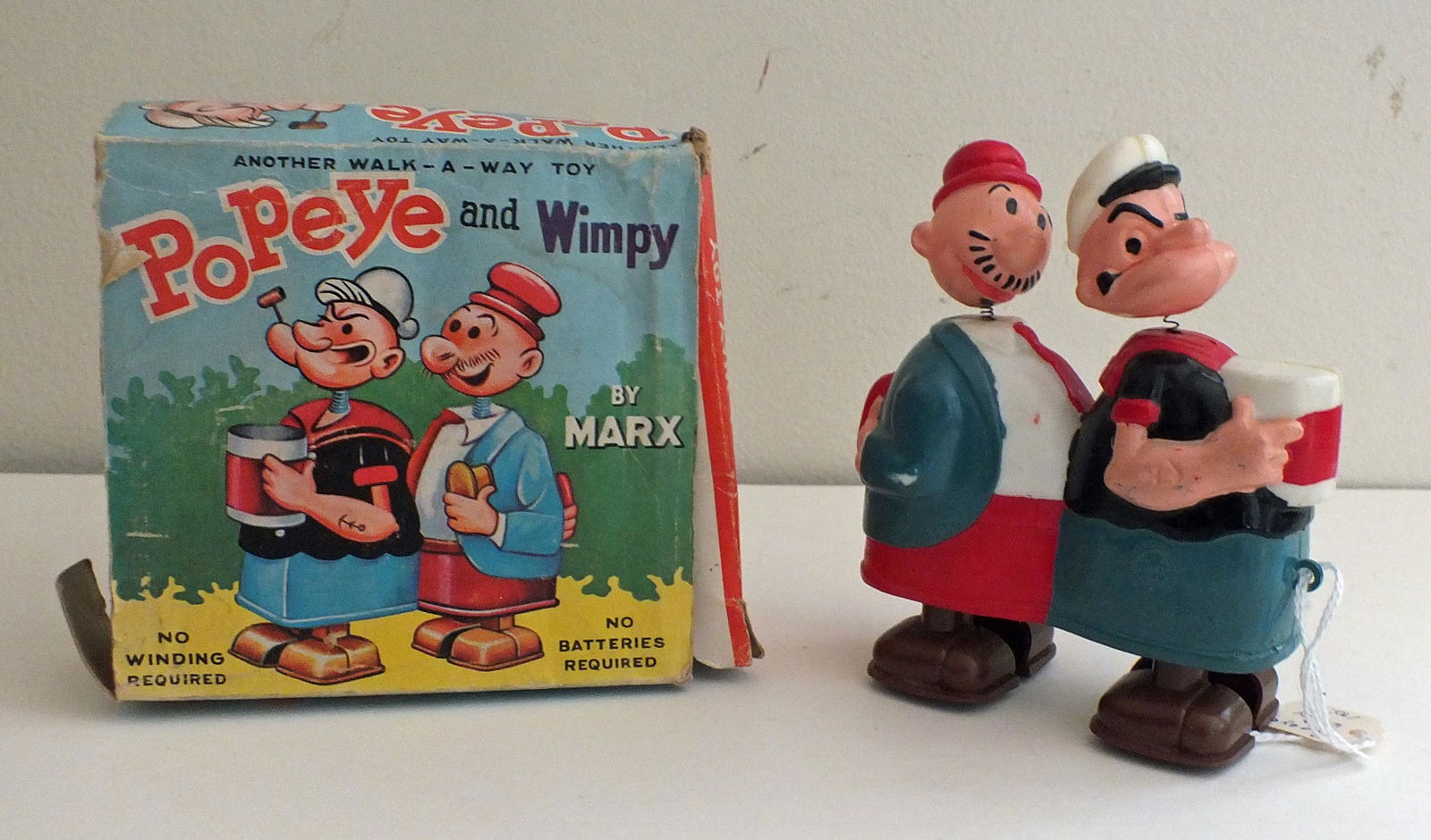 Lot of 3 Vintage Toys w/ Mattel SQ Dancing TwinsMar 07, 2026Vintage Mickey Mouse ToysMar 02, 2026Aladdin & King Seeley Tin Lunchbox Lot of 2 Inc. The Cyclist Moped and PeanutsMar 02, 2026Vintage Hard Plastic Light Up Santa's & SnowmenMar 07, 2026I00195 Two Character Collectibles Including a 1933 Mickey Mouse The Mail Pilot Big Little Book and a11 hrs LeftVintage And Modern Ceramic Disney Mickey Mouse Piggy BanksMar 02, 20266 Vintage Popeye Toys & GamesFeb 28, 2026BOXED MARX POPEYE CARRYING PARROT CAGESFeb 27, 2026POPEYE & JEEP FLEX FIGURES - CENTURY PROGRESSFeb 27, 2026Vintage Popeye & Olive Oyl Cast Iron Still BanksFeb 28, 2026VINTAGE CHARACTER DOLL AND TOY COLLECTIBLE ASSORTMENT INCL. POPEYE AND MIGHTY MOUSE4 days LeftVINTAGE WIND-UP TIN LITHO AND CELLULOID TOY ASSORTMENT4 days Left4 1975 Marx The Archies Action Figure Toys SealedFeb 28, 2026BISQUE POPEYE & SKIPPY TOOTHBRUSH HOLDERSFeb 27, 2026BOXED LINEMAR POP UP OLIVE OYLFeb 27, 2026LINEMAR POPEYE & MEAN MAN PLATFORM TOYFeb 27, 2026