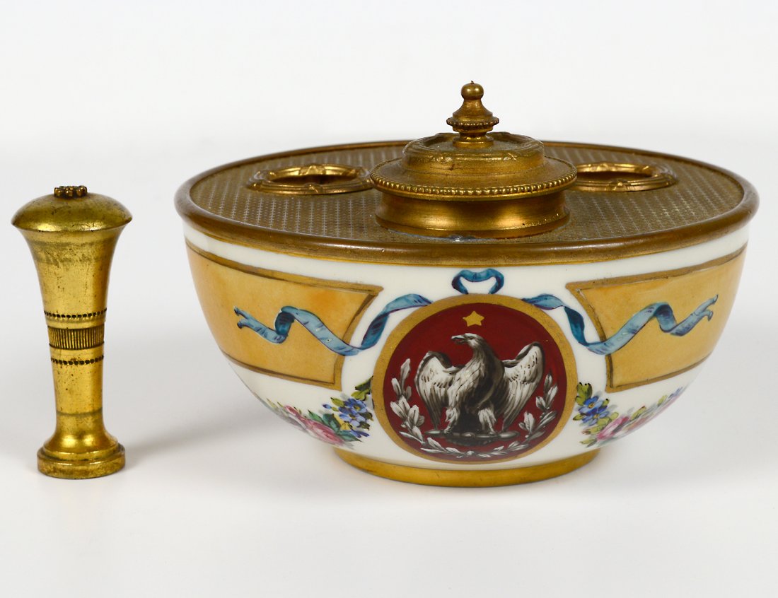PORCELAIN AND BRASS SEAL STAND