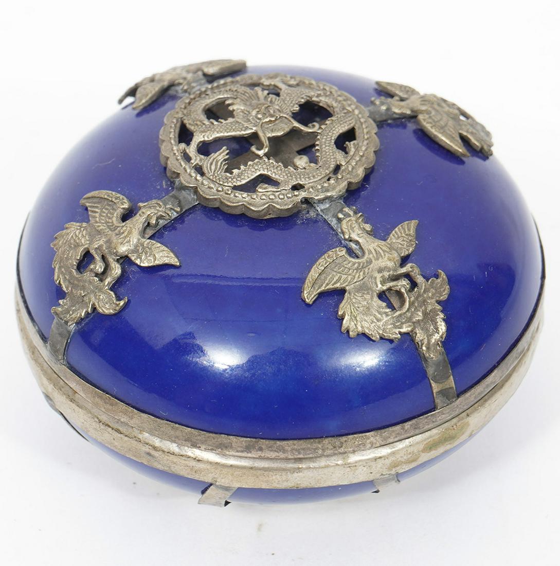 Porcelain Box with Chinese Theme Silver Overlay