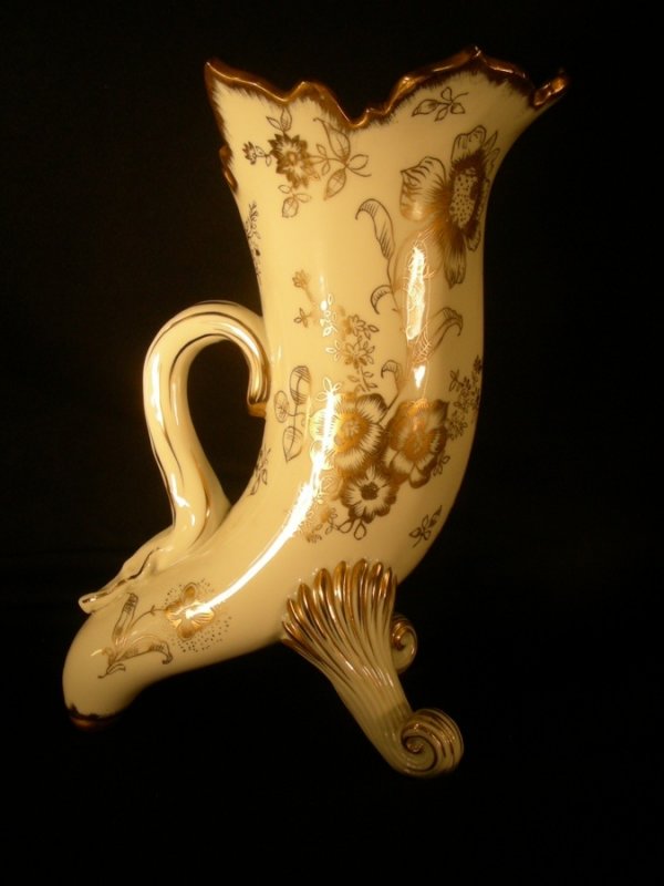 PORCELAIN CORNUCOPIA GILT FLORAL VASE