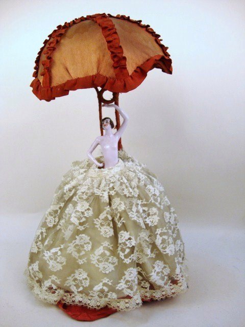 SoldTwo porcelain half doll whisk brooms, 4 porcelain halfTwo porcelain half doll whisk brooms, 4 porcelain half doll pin cushions, 5 porcelain half dolls and a pair of legs marked Germany and 2 unmarked porcelain half dolls. Also one full porcelain doll inSee Sold Price