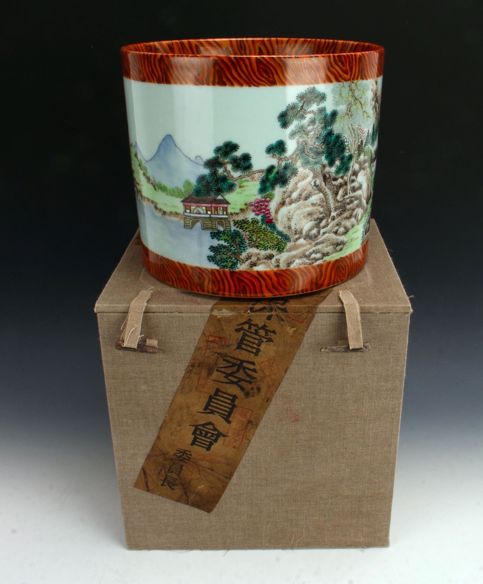 PORCELAIN LANDSCAPE BRUSH POT IN PRESENTATION BOX