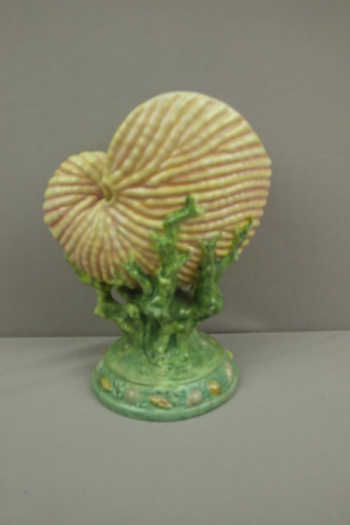 Porcelain nautilus shell vase, 9"