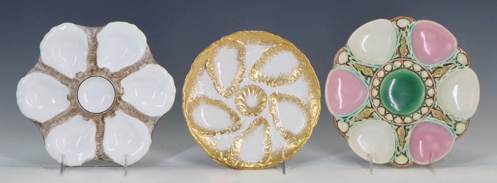 SoldCollection of six porcelain oyster plates(Lot of 6) Collection of porcelain oyster plates, including (2) Union Porcelain Works plates, design registry marks for 1879 and 1881, printed and/or impressed factory marks; Haviland gilt ribbon decoSee Sold Price