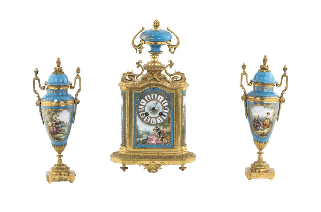 Lot of porcelain (4x)1268 Lots Away3 Piece French Japonisme Gilt Bronze Mounted Enameled Porcelain Clock GarnitureMar 15, 2026Antique 1889 Samuel Marti & Cie French Bronze and Porcelain three-piece Clock Garniture582 Lots AwayGuarniture with mantel clock and two candelabra France, 1871171 Lots AwayFrench Louis XVI Style Sevres Porcelain Bronze Clock and Candelabra Set of 35 days LeftFrench Clock SetMar 14, 2026Imperial Renaissance Style Clock Garniture Set3 days LeftThree Piece Rouge and Black Marble and Bronze Garniture Clock Set, early 20th c., Clock- H.- 19 in.,Mar 26, 2026French Enamel Gilt Bronze Chinoiserie 3 Piece Garniture Mantel Clock SetMar 14, 2026Three-Piece Vernis Martin Louis XV Painted Clock With Sconces Set2 days LeftRoyal Vienna Style Gilt Porcelain Clock319 Lots Away19thC French Garniture Set with Sevres Clock4 days LeftFranz Hermle Lancini Italian Mantel Clock & Garniture SetMar 14, 2026Gilt Bronze Garniture Louis Xv Style113 Lots AwayImportant Ormolu-Mounted Lapis Lazuli Mantel Clock with Companion CandelabraMar 12, 202619th C. Sevres Porcelain & Bronze Jewelled Clockset2 days Left