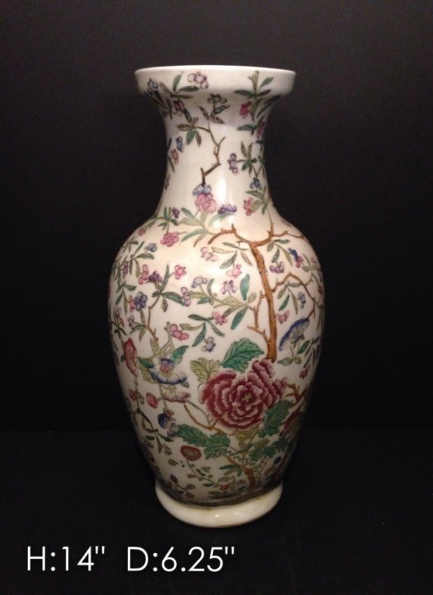 Decorative Chinese Porcelain Floral Temple Urn Vase