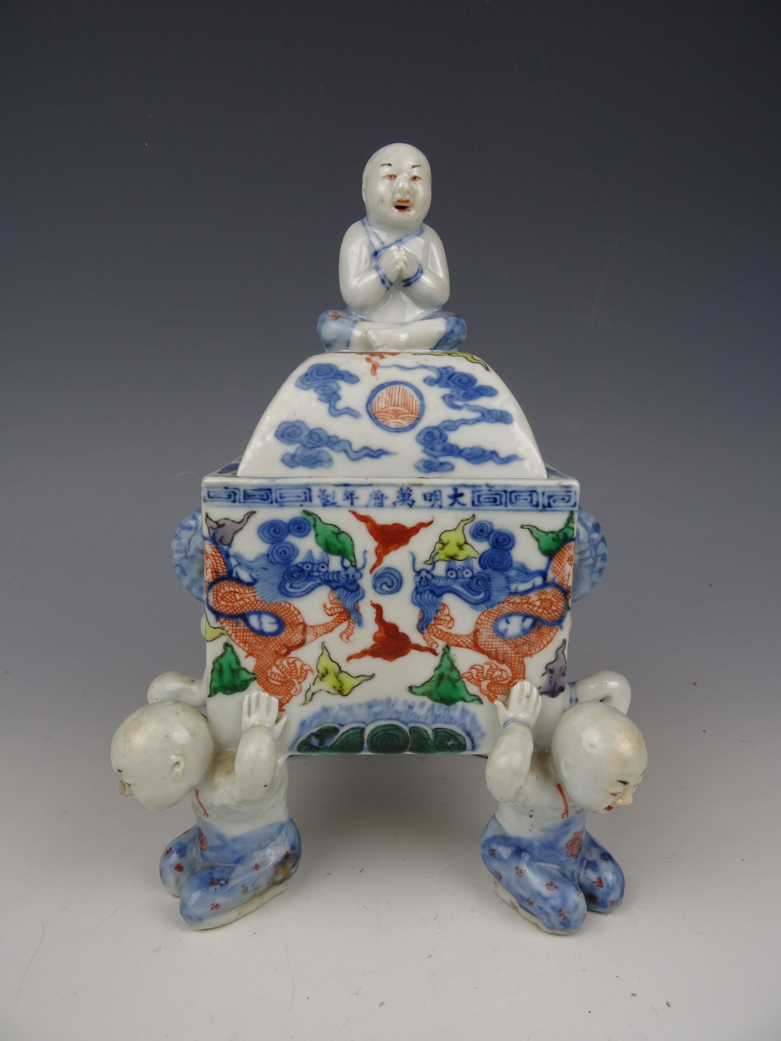blue and white porcelain incense burner depicting figures and stories from the Wanli period of theCJ Auction$60012 hrs Left