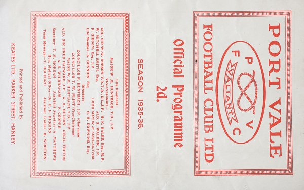 Port Vale v Burnley programme 2nd September 1935