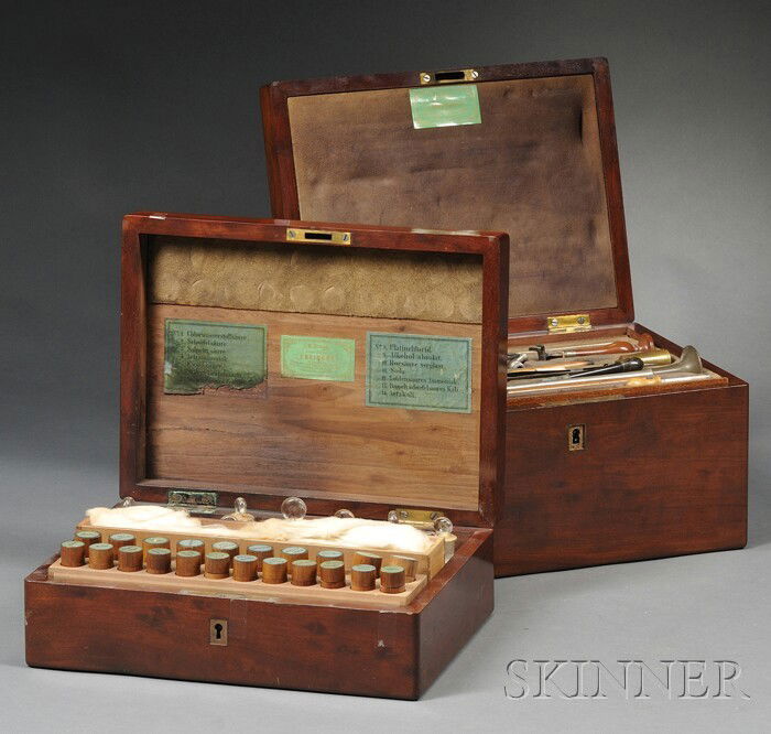 Portable Laboratory Kit in Two Mahogany Boxes, A.F