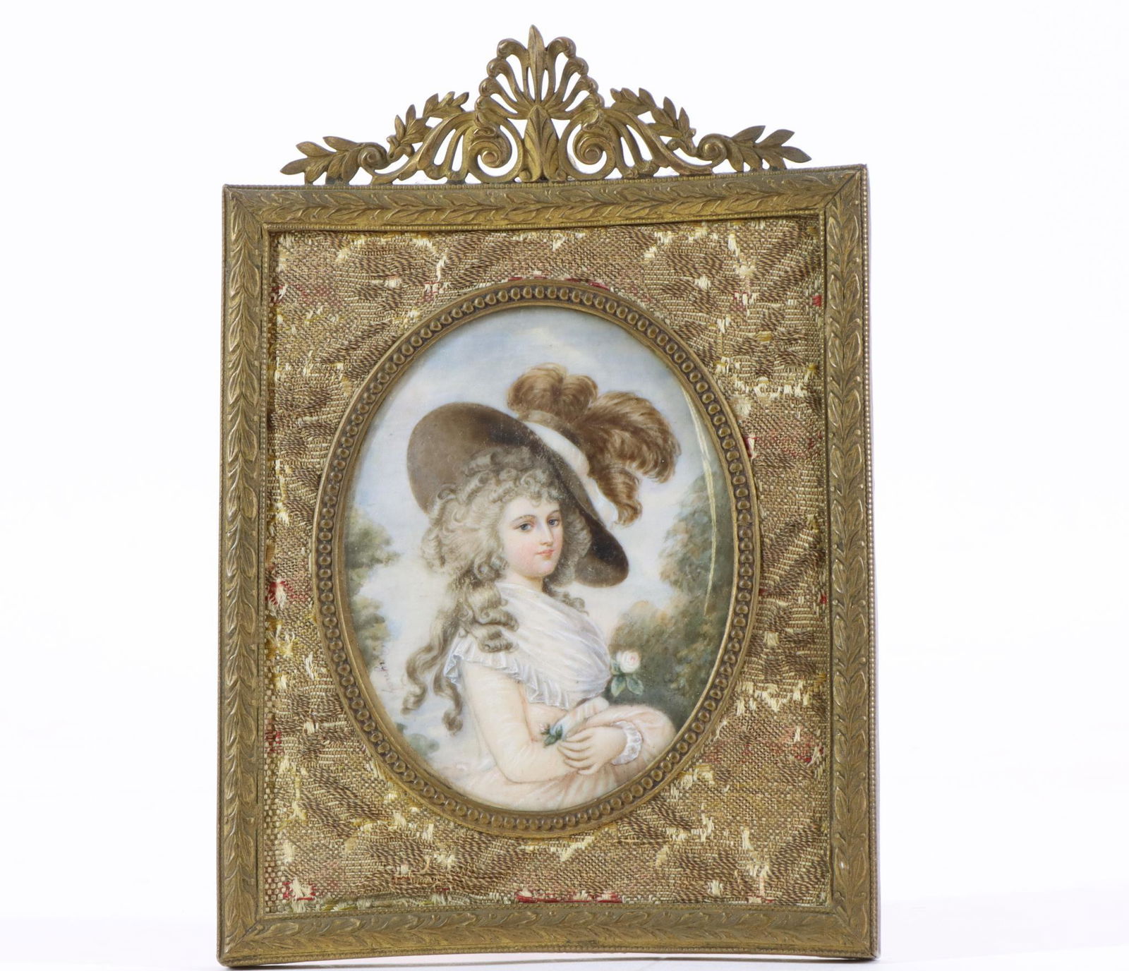 SoldNapoleonic Portrait Miniature signed Lucas in Guilt Metal Frame, 8 1/2"h.Napoleonic Portrait Miniature signed Lucas in Guilt Metal Frame, 8 1/2"h.See Sold Price