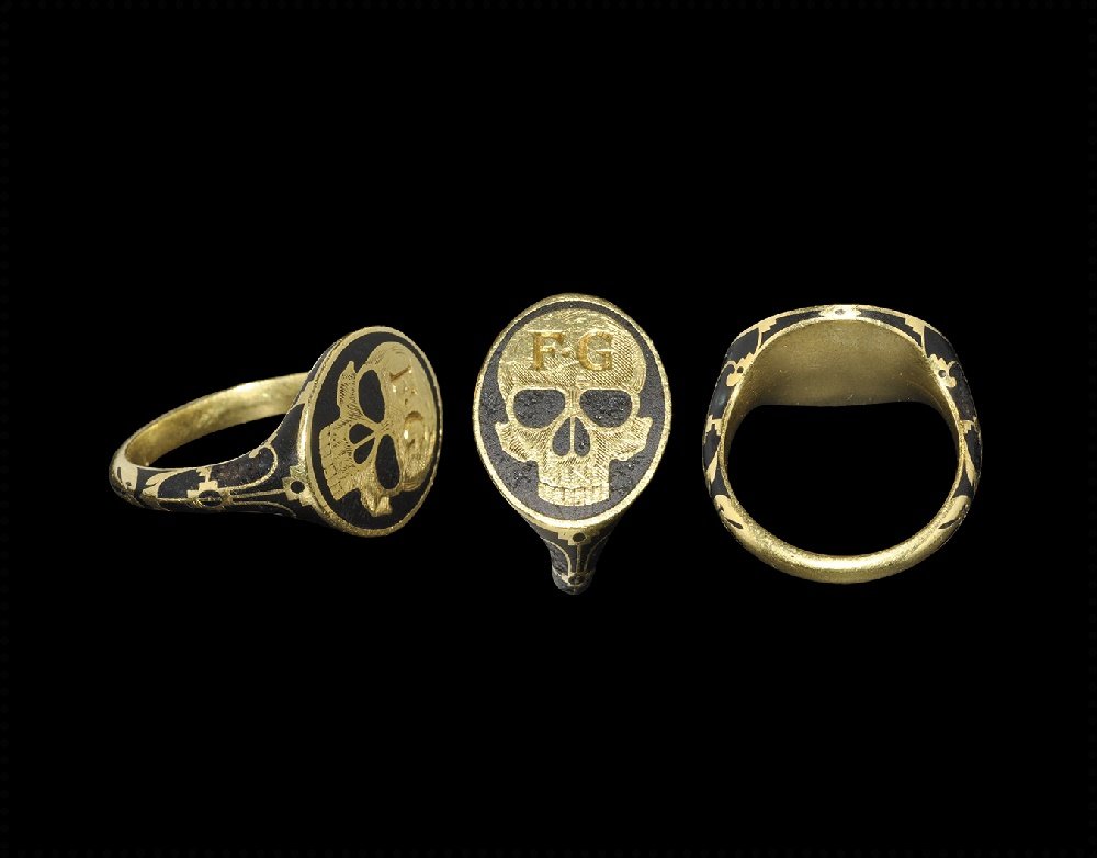 Post Medieval Enamelled Gold Skull Ring