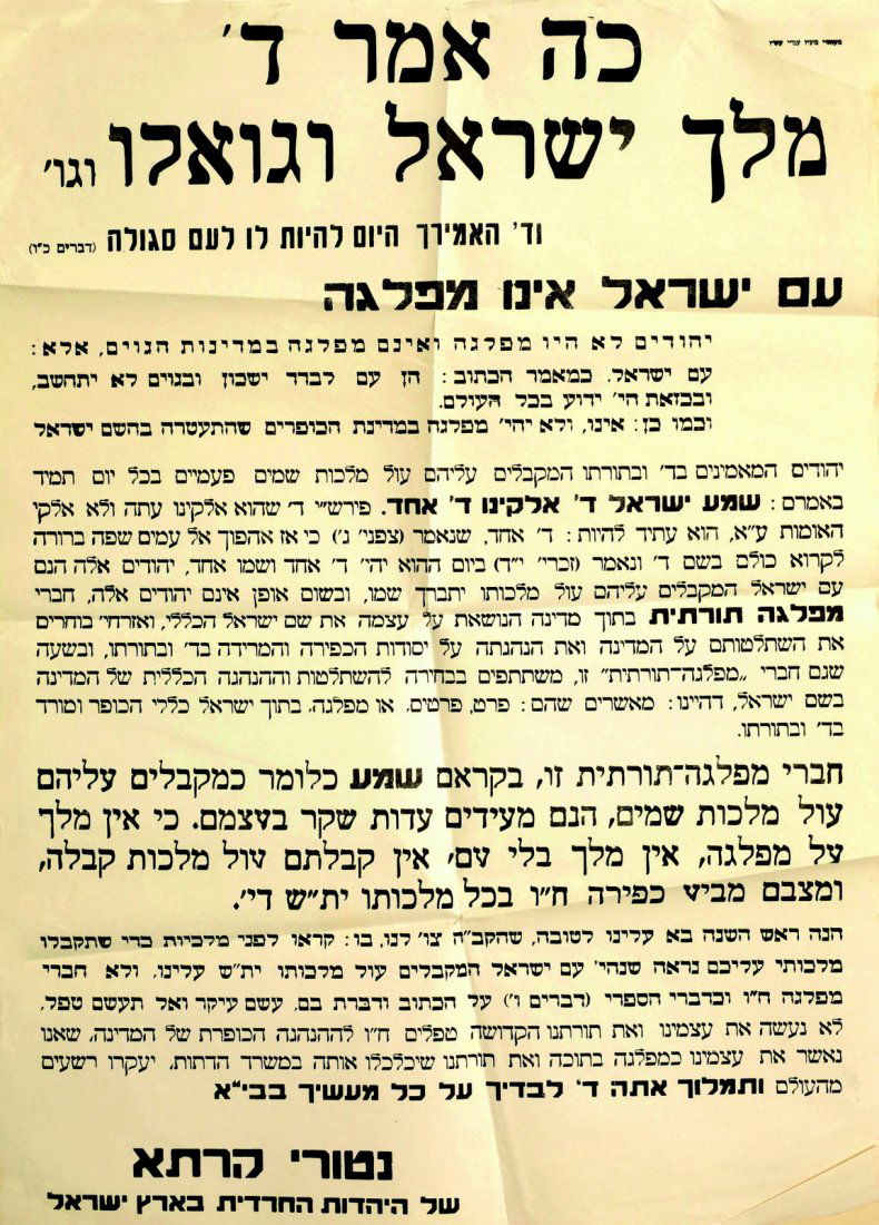Poster. 'Koh Amar Hashem'. Jerusalem, [1949]
