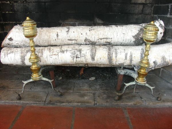 Pr. 19c. Amer. Brass Andirons, H.15";