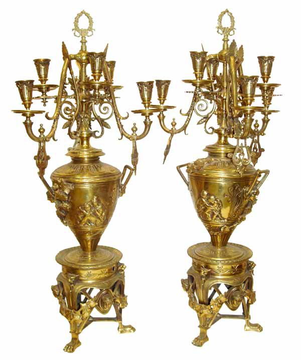 Pr. 19th C. cast bronze multi arm candelabras