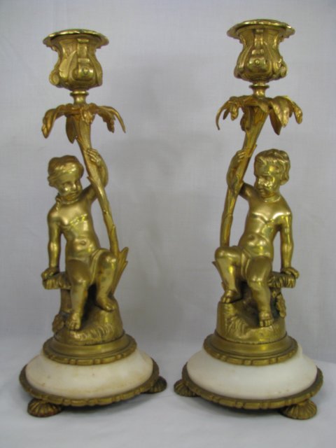 PR 19TH C. GILT BRONZE & MARBLE CANDLESTICKS