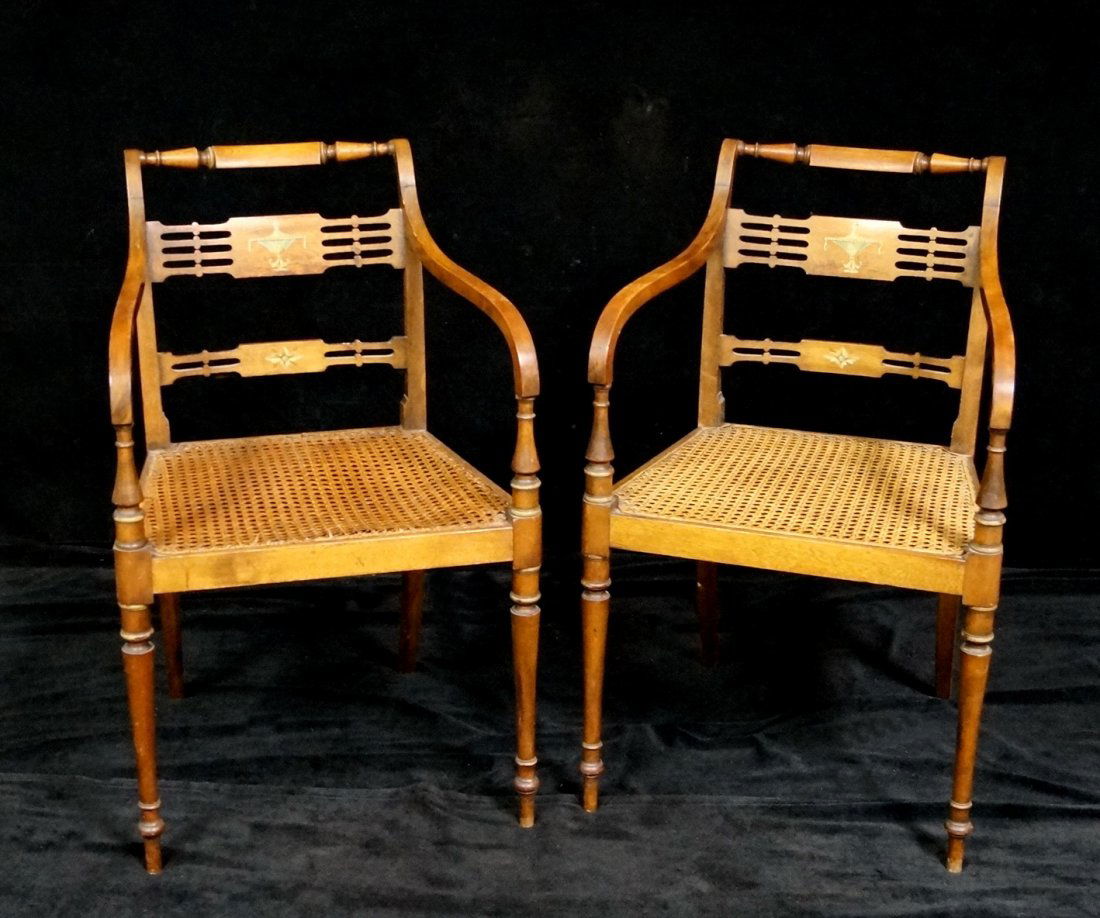 HIGHLAND CO., VIRGINIA, ATTRIBUTED, PAINTED FANCY CHAIRS, LOT OF TWOMar 06, 2026NEW YORK / NEW ENGLAND PAINT-DECORATED WINDSOR CHAIRS, LOT OF TWOMar 06, 2026A Pair of Chinese Yoke Back Official's Hat Chairs3 days LeftPAIR OF PAINT DECORATED ARROWBACK CHAIRS 33 1/2" X 16" X 17" WITH 17 1/4" SEAT HEIGHTMar 15, 2026A Pair of American Stencil Painted Side Chairs2 days LeftPair of antique stenciled rush bottom chairsMar 08, 2026PR OF 19THC. PAINT DECORATED ARROWBACK CHAIRS COUNTRY SHERATON, WITH RABBIT EARS 37" X 17" X 14 1/2"Mar 15, 2026Pair of Antique American Cane Seat Dining Chairs 1890s 1920s5 days LeftPair of Queen Anne Style Chairs with Cane BacksMar 07, 2026Pair of Lace Cane Chairs, Rocker and Side ChairMar 07, 2026Liberty & Co., attribution, Thebes chairs, pairMar 05, 2026PAIR OF SCROLLED ARMCHAIRSMar 08, 2026PR OF BOSTON CLASSICAL CHAIRS 33 1/2" X 18" X 21" (17 1/2" SEAT HEIGHT)Mar 15, 2026Pair of Antique Caned Seat Side Chairs with Bannister Backs19 hrs LeftPAIR OF UNUSUAL FANBACK WINDSOR ARMCHAIRS5 days LeftModern Painted Wood Armchairs, Pair3 days Left