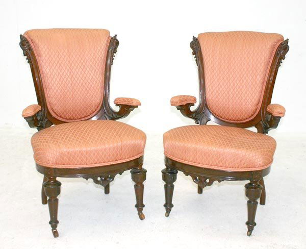 Pr American Renaissance Walnut Parlor Chairs