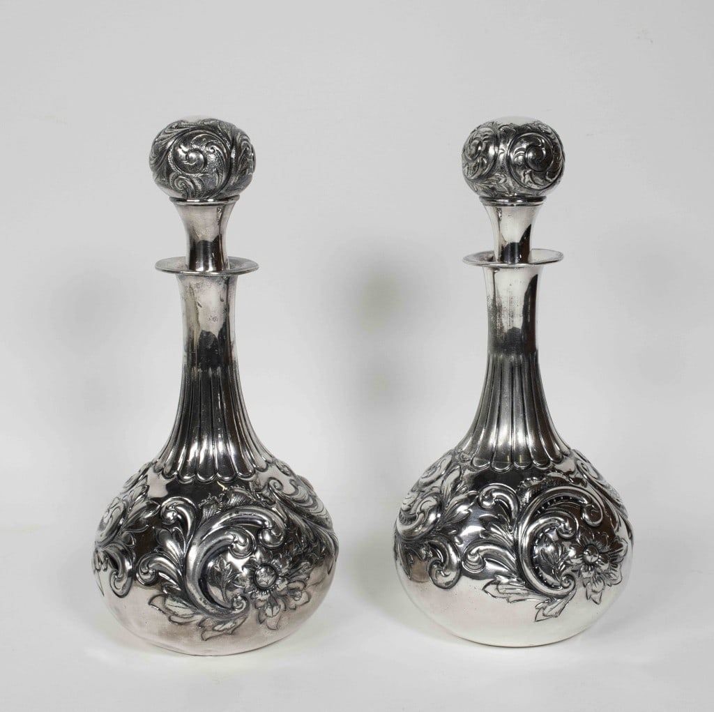 2 pc Lot Victorian Meriden & Rogers Silverplate Cruet Condiment CastorsFeb 28, 2026Pair of Fine Vintage Silver Collared Cut Glass DecantersA pair of silver-mounted 'glug glug' decanters, Early 20th century,Pair of Art Nouveau perfume bottles. Crystal glass with 925 silver.Feb 28, 2026Pair Baccarat Swirl Sterling Overlay Glass Cologne BottlesMar 01, 2026Pair Cologne Bottles, American Brilliant Cut Glass, Chester Pattern By DorflingerMar 07, 2026French Pair Baccarat Style Glass Liquor DecantersMar 11, 20266.8 troy ounces .925 Sterling Silver Salt and Pepper Shakers with Glass InsertsMar 02, 2026PAIR OF NICKEL PLATED CLOCKWORK TIME LAMPS Late 19th/Early 20th Century Heights 12".Mar 04, 2026Fine Pair of Continental Silver-Mounted Crystal EwersMar 12, 2026Pr of Hollywood Regency Filigree Perfume BottlesFeb 28, 2026White bronze gilt silver vase symbolizing rising prosperity16 hrs LeftTWO SILVER PLATED OIL LAMPS Late 19th/Early 20th Century Heights 9" and 13".Mar 04, 2026PR SILVERPLATE CHAMPAGNE/WINE COOLERSMar 07, 2026Pair of decorative candlesticks. EPNS. Silver-plated. England.Feb 28, 20262pc Brilliant Cut Lead Crystal Vase and Handbell5 days Left