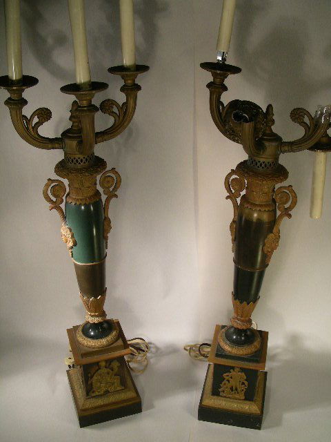 PR ANTIQUE BRONZE MOUNT CANDELABRA TABLE LAMPS