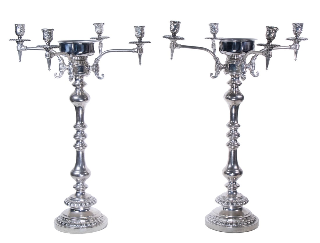 Lot of Sterling Silver, 3 Sterling Silver Weighted Bud Vases, 2 Sterling Silver Weighted Compotes7 hrs LeftPR ENGLISH SILVERPLATE CANDELABRAMar 20, 2026Pair of Empire Sterling Weighted CandelabraMar 20, 2026Pair George III Sterling Silver Candlesticks,Pair of Italian Neoclassical Silver Candelabras,4 days LeftInternational Sterling Royal Danish Candelabras PR1 day LeftPr. Sheffield Silverplate Candelabras 18" H X 17 1/2" W (From The Livingston Estate, Teviotdale)4 days LeftRegency Style Weighted Silver Plate Candelabra, 22 days LeftPair Jensen Style Sterling CandelabraMar 21, 2026Handmade 925 Sterling Silver Diamond Cut Round Candlesticks 16.5 Inches5 days LeftOrnate Handmade 925 Sterling Silver Floral Leaf Candlesticks 15.75 InchesMar 25, 2026A Pair of Danish Silver Four-Light CandelabraMar 17, 2026Elegant Handmade 925 Sterling Silver Leaf Floral Candlesticks Italy 10.75"3 days LeftPair of Three Arm Art Nouveau Style Metal Candelabras with Foliate Detailing4 days LeftPair of George III Candlesticks and Two Candelabra Inserts,Sterling Silver Three Branch Candelabra, PairMar 28, 2026