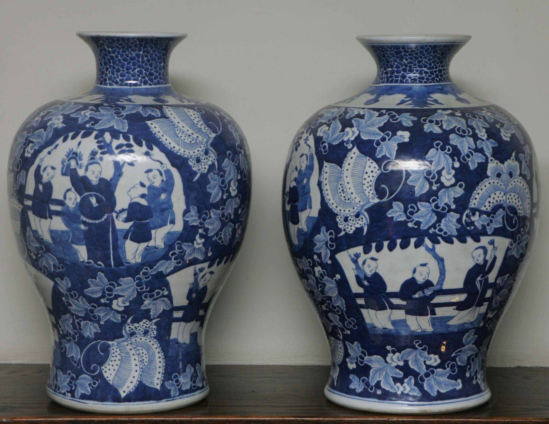 Pr Blue & White Baluster Vases