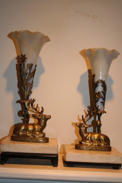 Two Vintage Ceramic Cornucopia Horn Vases Made In PortugalMar 04, 2026Vintage Brass Antelope and Deer Figurines3 days LeftPair Classical Design Table Lamps Urn Shape Form Reverse Glass Depicting GoddessArts & Craft Chinese Bronze Cloisonné Enamel Vase Lamp by Mimi London, PairA Pair of Rare Gilt Bronze Sika Deer Ornaments,Inlaid TurquoiseMar 04, 2026PR STAFFORDSHIRE PEARLWARE RECUMBENT DEER FIGURES, C. 184022 hrs LeftA rare gilt bronze Han Dynasty deer figurine10 hrs LeftPair of Art Nouveau Style Figural Table Lamps with Frosted ShadesMar 07, 2026A Pair of Exquisite Gilt Bronze Crane Pattern Double-Ears VasesFeb 28, 2026(2) JAPANESE SATSUMA STYLE ORMOLU-MOUNTED VASES NOW AS 5-LT CANDELABRA3 days LeftPair Antique Arts & Crafts Brass Incised CandlesticksMar 01, 2026A Pair of Coiled Dragon Vases with Chiseled Carving, Bronze with Gold Gilding5 days LeftPR GEORGIAN BELL METAL CANDLESTICKS2 days LeftArts & Craft Chinese Bronze Cloisonné Enamel Vase Lamp by Mimi London, PairMar 06, 2026French Bronze Mounted Porcelain Vases/Lamps6 days LeftA Brilliant Pair Of Gilt-Bronze Silver 'Phoenix& Flower' Jars With InscriptionsMar 06, 2026