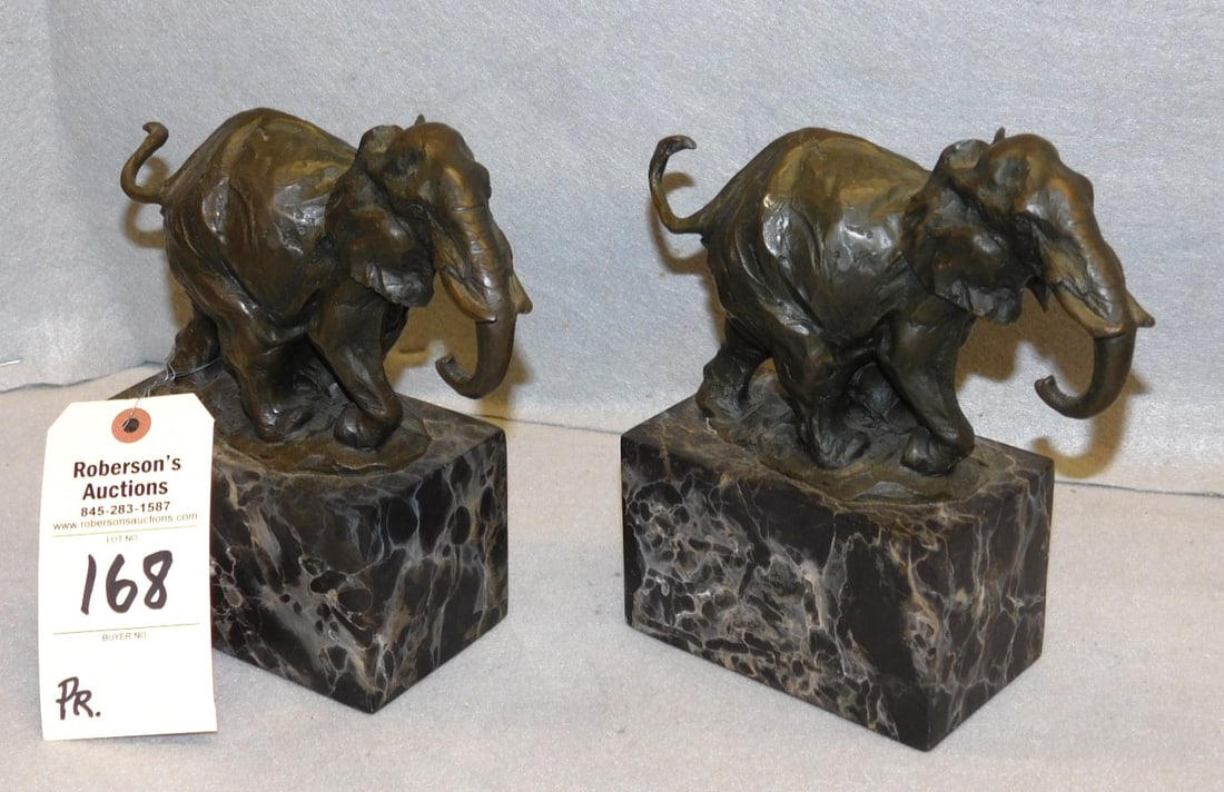 Pair Chinese bronze elephant bookends, signed, one missing tusks, 8" wide, 9.25" tall.Hudson Valley Auctioneers LLC Beacon NY4.8(627)$100Apr 13, 2026